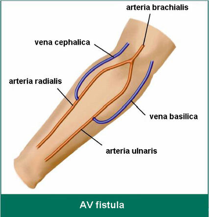 Arteriovenska fistula predstavlja najpoželjniji način pristupa krvotoku za bolesnike koji su na redovitoj hemodijalizi, a ostvaruje se kirurškim spajanjem arterije i vene na podlaktici bolesnika. Nakon 4 do 6 tjedana stvorena fistula može se koristiti za dijalizu. Takva vrsta pristupa uz odgovarajuću njegu može potrajati godinama.